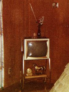 Na sliki je Carla, hči tete Albine in vnukinja tete Johane. Albina, ki sem jo tudi jaz klicala teta, je sliko poslala moji stari mami, svoji teti in stara mama mi jo je morala kar naprej kazati, ker se mi je zdelo, da gledam princeso. Kar nisem se je mogla nagledati, ker je bila tako lepa. Danes na sliki vidim vse kaj drugega. Minimalna oprema dnevne sobe, zavese, iz katerih bi si jaz, mojstrica improviziranja, naredila najbrž obleko (saj vem, da so kičaste, ampak jaz imam rada kič), bronastega konjička pod televizijo in minimalno sobno anteno, kar pomeni, da so imeli odličen signal. Pri nas takrat še nismo imeli televizije. Kupili smo jo nekaj let pozneje, signal je bil pa zanič, kadar je sploh bil. Če je v Javornikih grmelo, je tudi sredi poletja na televiziji snežilo. Sem spet malo zašla. Ko imam pa toliko za povedat.