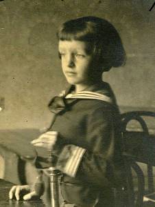 Aleks ima na posnetku približno sedem let, sedi na stolu, z rokami je naslonjen na mizo, pogled je uprl navzdol ali pa je pravkar zaprl oči. V Starih slikah smo ga že spoznali v njegovih zrelejših letih, pa tudi na smučeh in kot nogometaša ter morda še kje.
