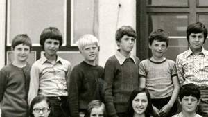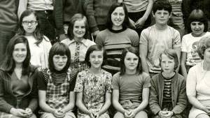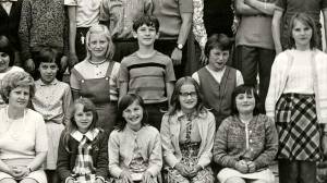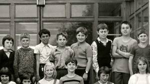 Številčno okrepljen 5. b razred, slikan s svojo razredničarko Marjano Širaj, ki je bila določena, da nam naslednje štiri leta stoji ob strani v dobrem in slabem.