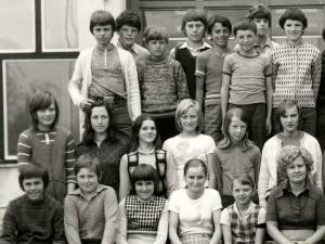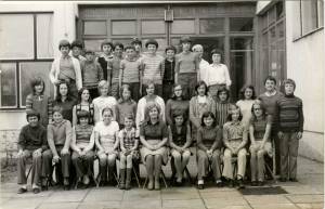 Pisalo se je šolsko leto 1974/75 in 6. b razred se je takole postavil pred fotografa Bajčka, na nam vsem znanem mestu, pred osnovno šolo v Cerknici.
