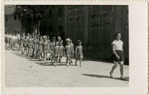 Prva v vrsti je vodja skupine in trenerka atletskih disciplin Ivanka Ileršič, por. Pungerčar. Ivanka in njena sodelavka Štefka, tudi z Rakeka, ki pa je ni videti na sliki, sta se morali kar nekaj časa usposabljati za vodenje te vrste telovadbe. Že pri štirinajstih letih sta se dvakrat na teden vozili z vlakom v Ljubljano na usposabljanje dve leti, potem pa sta bili še en mesec na učenju v Mozirju in na koncu še en mesec v Makarski.Slovarček: