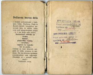 Državna borza dela – Državna posredovalnica za delo v Ljubljani je bila ustanovljena 20. decembra 1919. Bila je pomožni organ ministrstva za socialno politiko in je od leta 1921 delovala v okviru Delavske zbornice do leta 1928, ko so bile državne borze dela reformirane in so postale javne borze dela na samoupravni ravni z lastnim financiranjem. Ljubljanska borza dela se je leta 1939 izločila iz Delavske zbornice in postala samostojna Javna borza dela. Nadaljevanje sledi, ko bomo objavili kakšno knjižico iz kasnejših let. Npr. mojo, ko bom šla v penzijo.