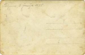 Spet sem odkrivala toplo vodo z ugibanjem o času nastanka slike, tu pa lepo piše: Poljane, 2 junija 1935 in to s kakšno lepo pisavo! Edino opravičilo zame je to, da je napis komaj viden.Slovarček: