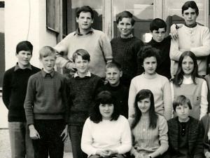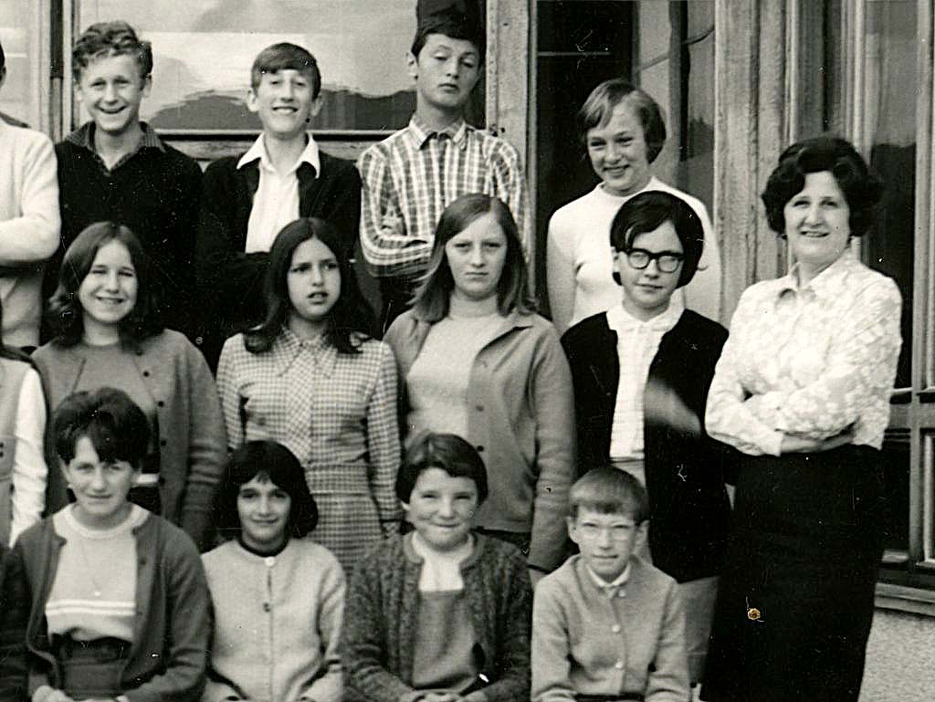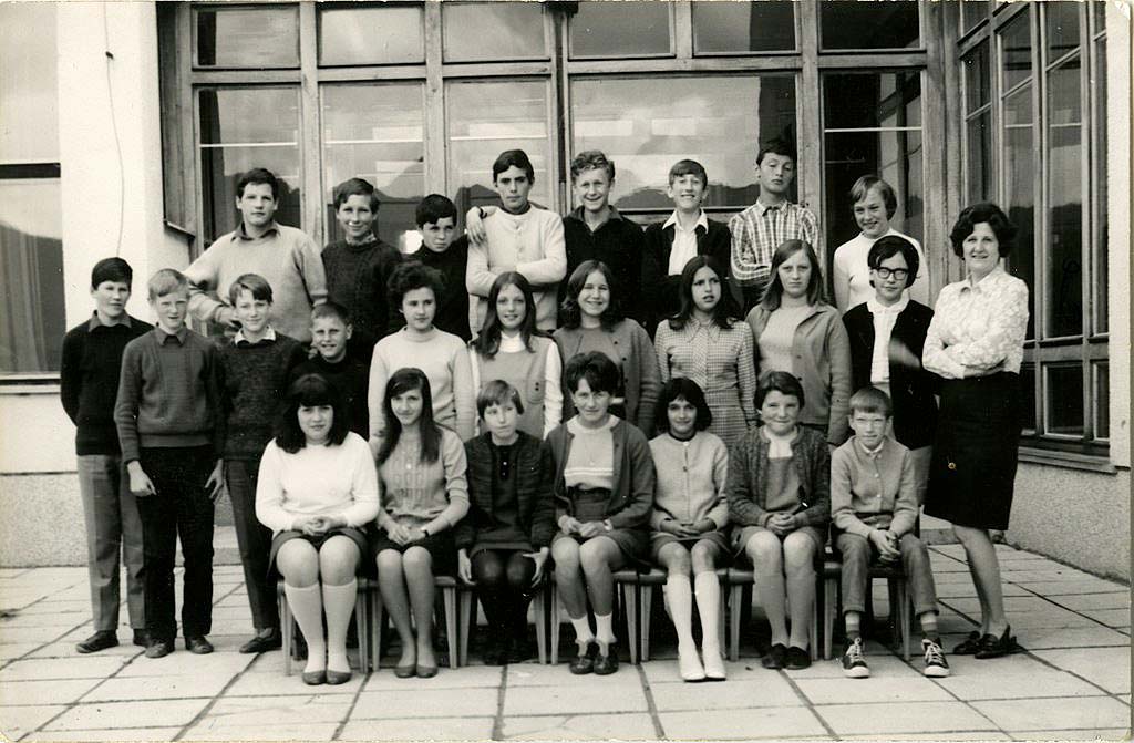 Klasična slika ob koncu šolskega leta. Ob razredničarki Veri Kravanja je slikanih 25 učencev 7. a razreda.