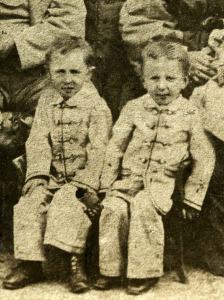 “Družina Lavrenčič v Postojni: spodaj dvojčka Maks in Andrej (Maks je desni) (Maks je oče Ivana)”