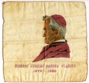 Spominske robčke Antona Bonaventure Jegliča, ki so bile ročno delo Tatjane Inchiostrijeve, je izdal konzorcij Ars sarea. Portret je naslikan na svilo pod njim pa napis »Biserni jubilej našega vladike, 1873 – 1933.« Kljub temu da je bila svila nekdaj draga, je stal robček 10 din, en izvod časopisa Slovenec pa 1 din in glede na ceno, si ga je lahko kupil vsak zainteresirani. Prodajali so jih v vseh trafikah. V čast bisernemu jubileju je mestna občina na vseh svojih poslopjih 29. in 30. julija izobesila zastave.