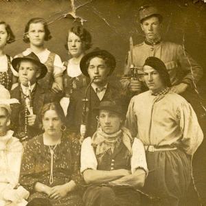 - v sredini desni z baretko je Franc Gornik. Bil je gibčen, telovadil je pri Sokolih. Ostal je v spominu, da je znal plesati po rokah, njegov oče pa je igral harmoniko.
