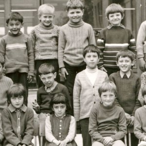 Prvošolčki, rojeni v letu 1965, se približujejo koncu prvega razreda. Za nagrado jih je slikal fotograf Bajček. Za spomin.