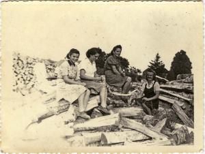 Ta mlada dekleta so nosila in skladala cepance ob cesti v bližini Milanovega Vrha. Oblečena so v lahna poletna oblačila in obute v nizke čevlje z gumo – o zaščitni obleki ali obutvi ni ne sluha ne duha. Le ena nosi klotast predpasnik (Marija Janeš – Lekačava Mica), pri nas so si ga žene nadele v nedeljo popoldne, ali pa, če so šle v Prezid v trgovino – veljal je za boljši kos garderobe. Ostala dekleta so neprepoznana. V ozadju se lepo vidi visoka skladovnica cepanc, ki jih bodo tovornjaki odpeljali naprej do strank.