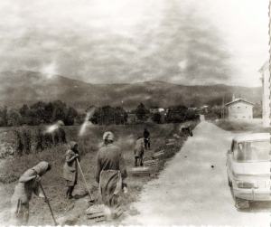 Še nekaj o sami sliki. Pogled od Lipsenja proti Žerovnici. Na cesti stoji avto NSU Prinz, skrajno desno je delno viden transformator ob cesti , ki zavije za Sv.Štefan in Podšteberk. Hiša v sredini je Smrdetova v kateri je imel Viko Smrdu avto kleparsko in ličarsko delavnico ter zaščito podvozja je tudi opravljal. V ozadju je vas Žerovnica in levo v ozadju Slivnica.