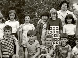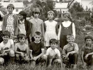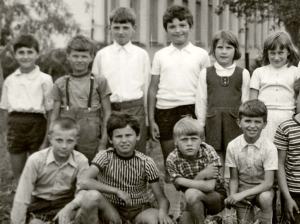 Slika 3.a razreda je nastala v travi, na šolskem vrtu. Prav lepo jih je videti za spremembo slikane na ne prav običajnem mestu. Z njimi je njihova razredničarka Marija Kopitar. Na sliki pogrešamo lastnico slike. Odsotna iz pozabljenega razloga. Pa to sploh ni pomembno. Pomembna je pripadnost razredni skupnosti in pa to, da imaš v svoji zbirki tudi sliko, na kateri te sploh ni. Vredno vse pohvale.