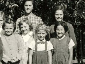 Leta 1960 je bilo v prvi razred osnovne šole vpisanih devet otrok, kar je največje število otrok po vojni. Čepijo v prvi vrsti.