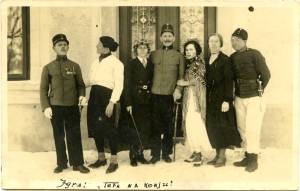 Ivanka preveri…..Ugibam, ampak po podobi in mojem spominu je desni moški Mekina Matija, brat mojega starega ata.
