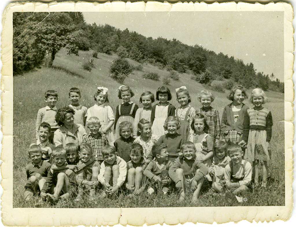 Nisem povsem prepričan, a se mi zdi, da je ta slika nastala na koncu prvega razreda letnikov 1950. Siguren pa nisem zato, ker zadnjega pol leta nismo imeli samo ene “tršice”, ampak se jih je nekaj menjalo, ker smo med zimskimi počitnicami ostali brez naše stalne “tršice”.