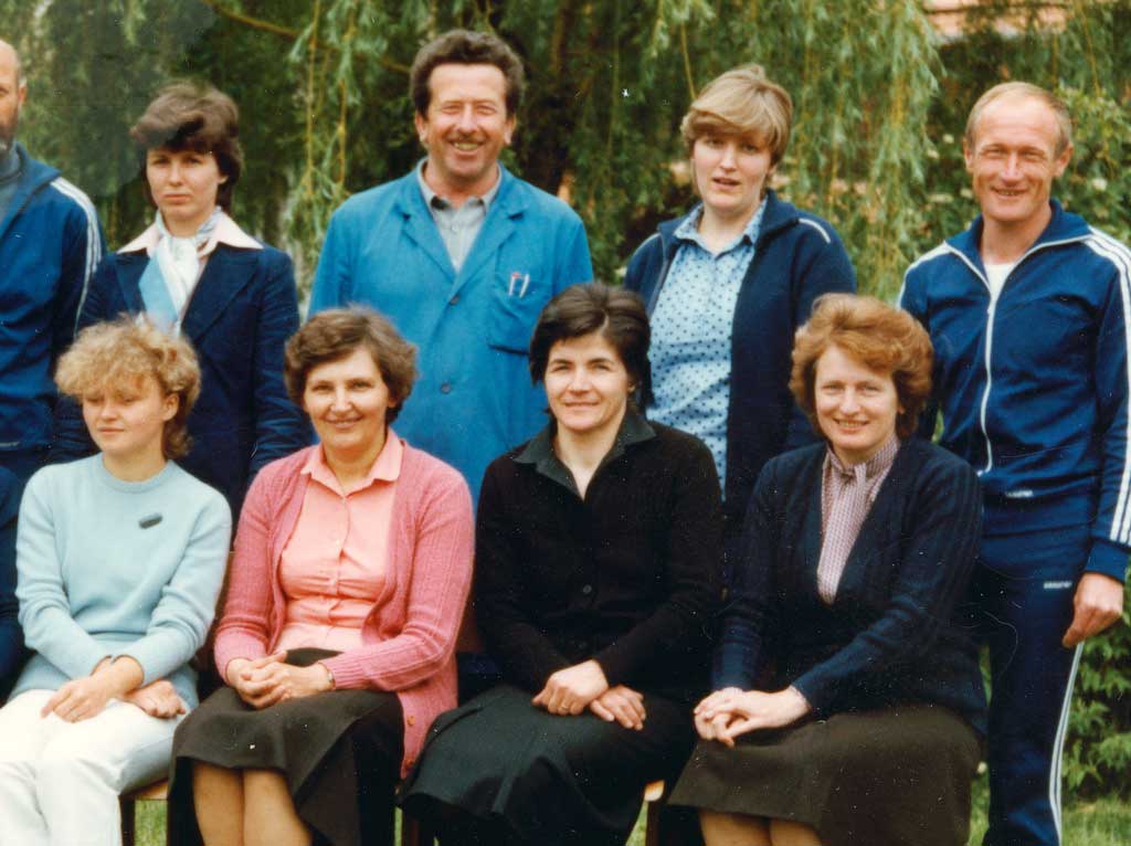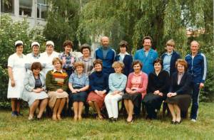 Ob koncu šolskega leta 1983 je na šolskem vrtu cerkniške šole nastala današnja slika. Takratna ravnateljica Marija Lavrenčič slikana v družbi učiteljev višje stopnje, knjižničarke, treh kuharic in hišnika. Spominska slika, ki še kako obudi spomine na lepe čase. Čase, ko si se v službi dobro počutil med svojimi sodelavci, ko je celoten kolektiv dihal kot eno in za dobro vseh skupaj. Na šoli sta bila dva učitelja telesne vzgoje, eden je poučeval fante, drugi dekleta. Kot se za športnika spodobi, sta slikana v športni opremi. Prav tako hišnik v delovni halji in kuharice v predpisani beli uniformi. Prav lepo jih je videti takole skupaj in dobre volje.