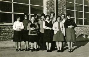 Brestove jubilantke iz Gorenjih Otav so se fotografirale pred stavbo nekdanje Brestove Iverke, ki je v tistem času že bila preseljena na novo lokacijo v Podskrajniku.