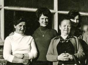 Zadaj stojita Marija Koščak s Pikovnika in Majda Borštnik iz Begunj, ki se je poročila v Gorenjih Otavah, sledi Fani Doles – Mežnarjeva iz Gorenjih Otav, Marinka Doles – Pikonkova iz Pikovnika in Danica Zalar – Betačeva iz Gorenjih Otav.