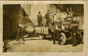 Slika je iz zapuščine Mirka Vidriha. Njegova hči ni vedela ne kje ne kdaj je bila posneta, ne za kakšen namen in tudi nikogar na sliki ni spoznala. Verjetno pa je, da je možak, označen s križcem, Mirko sam. Na sodu piše »Terpin Rakek«. Nobeden se ga ne spomni. Poznam ene Trpine iz Rovt pa pravijo, da ni njihov sorodnik. Slika je bila namenjena Mariji Mlakar v Lož. Prepričana sem, da bo kakšen od bralcev povedal kaj več o omenjenih osebah.