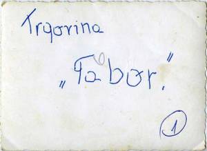 Iz napisa na zadnji strani je razvidno, da se je trgovina imenovala Tabor. Priznati moram, da me je ime malce begalo, saj nekako bolj paše na Plac, kjer je Tabor v neposredni bližini in so tam tudi že bile trgovine. Ampak ne, nedvoumno gre za ime trgovine v Žumrovi hiši.Slovarček: