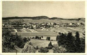 Razglednica Rakeka iz tridesetih let dvajsetega stoletja, ki jo je založil trgovec in gostilničar Anton Demšar z Rakeka.