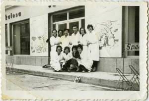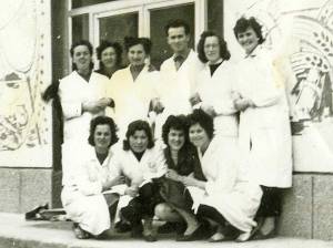 Slika je nastala pred obnovljeno trgovino Trgovskega podjetja Škocjan Rakek, ki je bila leta 1961 odprta v spodnjih prostorih Žumrove hiše v centru Cerknice. Obnovljeno pravim zato, ker je bila od leta 1948 tu že trgovina Tabor. Razlog za nastanek skupinske fotografije je zagotovo povezan z novim odprtjem le te. Ne glede, ta trgovina, sicer pod drugim lastnikom, obratuje še danes in jo Cerkničani najbolje poznajo po imenu Delikatesa.