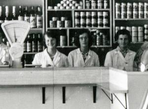 Na sliki iz leta 1961 je osebje trgovine, ki jo je trgovsko podjetje Škocjan z Rakeka, odprlo v Žumrovi hiši, v centru Cerknice. Neznani fotograf je trgovke slikal za pultom oddelka delikatese in manjšim bifejem, v takrat sodobni in na novo odprti trgovini.
