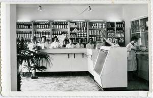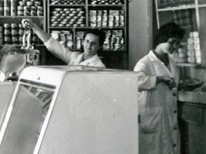 Kot prikazuje ta slika, je bil tu že postavljen prvi avtomat za kavo in hladilnik za salame. Kot se za novo in moderno trgovino spodobi, so bile police polne in skrbno zložene. Natančnost in urejenost najbolj izstopa na policah s pločevinkami, ki so zložene natančno in s polno mero potrpežljivosti. Zadaj je bil še en prostor, ki so mu rekli “mala sobca“. V njej so bile štiri mize s stoli za stranke bifeja. Spredaj, v samem prostoru delikatese, pa sta bili še dve mizi s stoli, namenjeni za krajši postanek, oziroma “za na hitro popit kavico”.