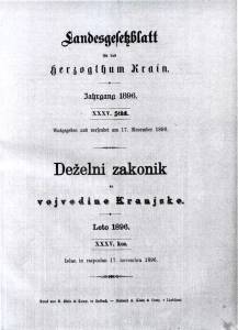- Deželni zakonik za vojvodino Kranjsko 15. 10. 1896, dLib.si
