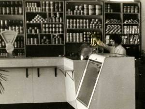 Neznani fotograf je slikal iz prostora špecerije (ki jo vidimo na tem posnetku), zadaj pa se vidi del delikatese in bife.