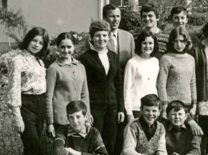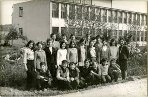 Pred nami je slika 7.b razreda leta 1969/70. Z njimi je razrednik Branko Kebe. Tokrat jih je fotograf postavil na neobičajno mesto. Šolo vidimo z drugega zornega kota, z desne strani ob cesti proti Vidmu. Ob šoli so še zelo majhna topolova drevesa. Za učenci je skalnjak, žal se ga premalo vidi. Na tem mestu so danes otroška igrala.