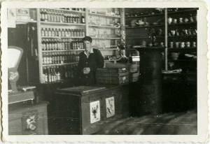 Janez Otrin je zavzel držo, ki že od daleč nakazuje, da je vesten in sposoben trgovec. Naslanja se na gajbo, v kateri je kdo ve kaj. Police pa so polne steklenic neke pijače – Pelinkovca ali malinovca.Kraj: Cerknica
