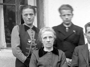 Mame se spomnim le bežno, ata pa zelo dobro. Doživeli so visoko starost in so bili po vojni najstarejši moški iz svoje generacije v Dobcu. Sina Toneta je vzela vojna, France pa se je poročil in šel od doma. Tako so bili ata edini moški pri hiši in so delali kar do konca. Večkrat sem jih srečala, ko sva nabirala šipek ali drnulje, pa sva kakšno rekla. Ker so se mi zdeli vedno enaki, sem se sama počutila zelo mlado. Atove sestre nisem poznala. Na sliki jo je prepoznala Brešča Tončka.