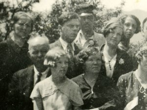 Starejša gospa v sredini je zelo podobna materi Ivane Puntar Mariji Gabrenja.Slovarček: