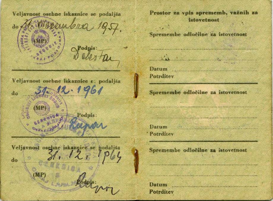 1950 Cerknica – Osebna izkaznica