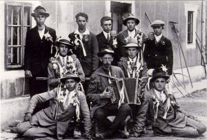 Kar primerno okrancljani so fantje, kar nekaj jih je v nobel klobukih, verjetno so že potrjeni za vojake, pa so se takole po gasilsko postavili pred objektiv. To so bili časi, ko je bila prava sramota, če fant ni bil potrjen za vojaka.