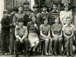Razredničarka Milena Kvaternik in njen razred vozačev, slikani pred šolo Cerknica v šolskem letu 1974/75. Slikanih je 32 učencev, od tega kar 20 fantov in le 12 deklet. Med njimi sedi v prvi vrsti mlajša deklica Jelka Šivec iz Avstralije. Njena sorodnica Tončka jo zaščitniško drži za ramena. V Slovenijo je Jelka prišla na obisk z očetom, Tončkinim bratrancem. Slovensko ni veliko razumela, vendar sta se s Tončko dobro ujeli. Dopoldan, ko so otroci odhajali v šolo, bi Jelka ostala sama doma med starejšimi in se dolgočasila. Zato je šla kar s Tončko v šolo in pristala tudi na skupinski sliki. Tako preprosto se je vse včasih dogajalo. Danes pa prošnje, dovolilnice in razni podpisi …