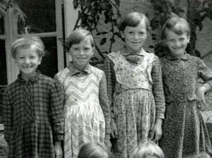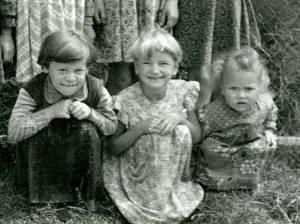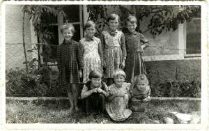 Zanimivo je, da smo bili še tega leta otroci v poletnem času večinoma bosi. Iva na fotografiji to dokazuje. Mislim pa, da smo bosi tudi ostali otroci. Podplate smo imeli dokaj utrjene tako, da smo zmogli hoditi tudi po pokošenih strniščih in sveže pokošenih senožetih ali pa po makadamskih cestah. Se pa spomnim, da smo na prašni makadamski cesti izbirali raje hojo po kolesnicah, kjer je bil pesek že drobno zmlet oziroma je bil že droben prah ali pa po uhojenih travnatih stezicah. Najhuje je bilo hoditi po pravkar pokošenih travnikih in strniščih. Vendar se temu nismo mogli izogniti, saj je bilo potrebno pokošeno travo ali seno na vsak način v jutranjih urah najprej razmešati nato pa popoldne pograbiti v ograbke in nato z vozom odpeljati domov.