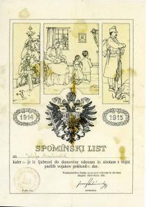 1915 Cerknica – Spominski list za darove vdovam in sirotam v vojni padlih vojakov
