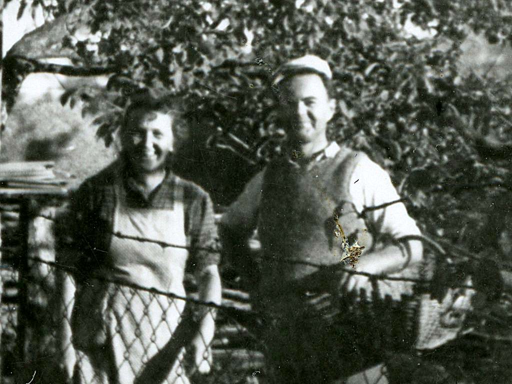 Slika je nastala 15. 10. 1961 v Cerknici, na domačem vrtu ob Notranjski ulici. Neznani fotograf je slikal kar s ceste, ko sta se mama Ivanka in oče Tone Kranjc postavila ob ograjo, ki poteka vzdolž vrta ob cesti. Sliko ponosno hrani kot spomin na svoja draga starša njuna edinka Mira, ki se ju spominja kot zelo pozitivna človeka. Dala sta ji dobro življenjsko popotnico s svojim vzgledom in navodili. Živi in delaj pošteno in nikoli ne obupaj!