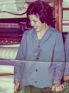 V trgovino s tekstilom sem vedno rada zahajala, pa ne samo zaradi velike izbire tekstila, ampak tudi zaradi prijaznih prodajalk. Vedno so bile nasmejane in ustrežljive. Ni jim bilo težko zložiti s polic velike bale metražnega blaga, ali pa česa drugega, da so le ustregle kupcu. To se je videlo tudi pri prometu, ki so ga naredile vsak dan. Imele so zelo širok asortiman. Pri njih si dobil vse od kavča, vzglavnikov, prešitih odej, metražnega blaga vseh vrst, spodnjega perila, puloverjev, jopic … do volne, prejice, gumbov, igel za šivanje. Kadar so dobile lepo posteljnino ali odeje ali puloverje, so jih razstavile po pultu, da so jih ženske takoj opazile in skoraj slednja je odšla s polno torbo domov, ali pa se je kasneje vrnila, če ni imela denarja. Kartic takrat ni bilo.