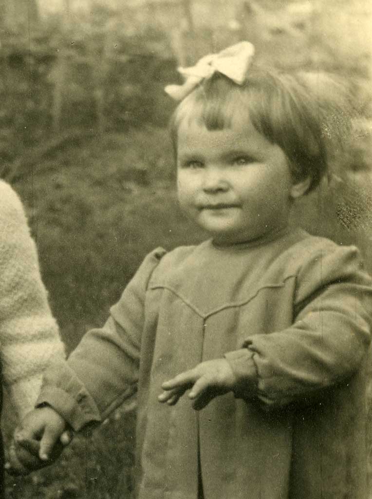 Na fotografiji sva moja sestrična Mira Kranjc in jaz. Mira je od mene leto dni mlajša. Mene je pripeljala mama, Miro pa teta Ivanka.