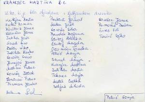 Ko smo bili v osmem razredu, so našo šolo v Cerknici obiskali novinarji iz časopisa Ljubljanski dnevnik in slikali tudi naš 8. c razred. Objavljeno je bilo v maju 1977. Poizvedovali so o naših odločitvah glede srednje šole. Iz tega obiska je ostala današnja slika, na kateri delujemo nekam prestrašeno ali pa negotovo. Kako smo se nagužvali v zadnje vrste, kot bi se namerno skrivali. Boljši občutek je bil tedaj, ko nas je slikal Bajčkov ata.
