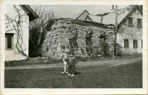 Tale sličica pa je nastala veliko pozneje, leta 1974, ko je bil vnuk Županovega očeta star dve leti. Njegov oče Ivan ga je postavil ob novega lesnega konjička, za ozadje pa je uporabil ruševine še leta 1928 pogorele Jožetove hiše, ki je po požaru niso obnovili. Druga Jožetova hiša se vidi v ozadju, na levi pa je del hiše “tete” Neže. Pred hišami pelje kolovoz na njive ali pa na drugo stran k soseskinemu skednju, Od njega se je odcepila tudi gladka bližnjica na Malenšče, ki je vodila poprek čez njive, ne glede na to, kako so se lastniki njiv jezili – ovinek po kolovozu bi bil za perice in mularijo predolg.