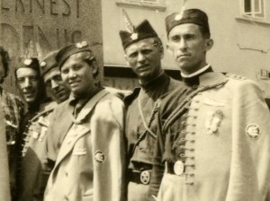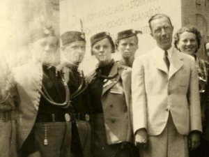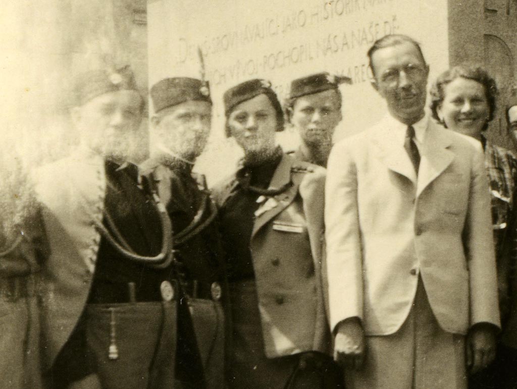 Ob spomeniku Ernestu Denisu so se v letu 1928 slikali rakovški sokoli. Posnetek je najverjetneje nastal 27. ali 28. oktobra, ko so potekale slovesnosti ob deseti obletnici Češkoslovaške republike.