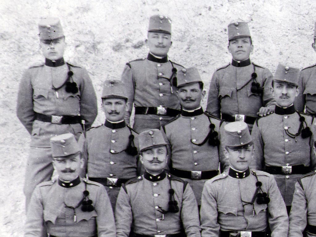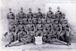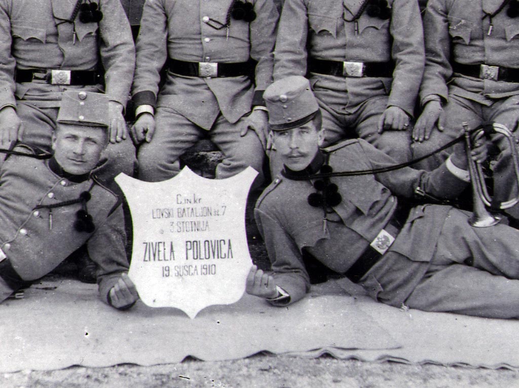 Tine Bombač, ki mi je dal tole fotografijo, je dejal, da so na sliki udeleženci oficirske šole 7. lovskega bataljona 3. kompanije, slikani v Tolminu 19. sušca 1910. Napis ŽIVELA POLOVICA pomeni, da so vojaki, udeleženci oficirske šole opravili polovico roka, tu verjetno polovico usposabljanja v oficirski šoli.