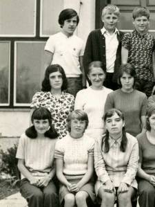 V šolskem letu 1973/74 smo 7.c razred obiskovali pod vodstvom razredničarke Marije Arnuš. Slikanih je 28 učencev in od tega kar 18 deklet in le 10 fantov. Mislim, da so se morali fantje kar precej potruditi, da so prišli do besede.