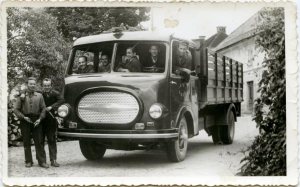 V času delovanja avtomehanične delavnice na Rakeku (sedanja stara telovadnica) so v letu 1955 med drugim opravili remont kamiona Kmetijske zadruge Unec. Sami so izdelali novo kabino in vgradili nov FAP-ov motor. Seveda pa je bilo obvezno opravljeno delo preizkusiti v praksi. Ker se jim je mudilo, so šli na prvo preizkusno vožnjo kar brez šip. Kar se na sliki tudi vidi. Odločili so se, da se zapeljejo do “mejsta Cjrknca« in to na izbrano mesto. Slika je nastala na Taboru v Cerknici pred sedanjo Knjižnico Jožeta Udoviča. Fotograf je legendarni “Foto Žnidaršič”. Po izjavah še živečih je bila vožnja zelo uspešna.