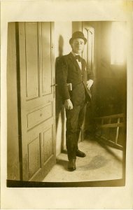 Na tej sliki vidimo Alojza Tomca na prizorišču in v kostumu za najbrž glavno vlogo v igri Narodni poslanec. Na hrbtni strani slike je s svinčnikom zapisal: “Narodni poslanec, 13/5. 28”