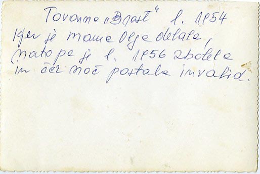 Nataša se spominja, kako je kot majhna deklica vedno šla počakat svojo mami in ji vsa vesela tekla nasproti, ko je le ta prihajala iz službe. Žal pa ni dolgo delala na Brestu. Saj je le dve leti po nastanku te slike, leta 1956, zbolela za otroško paralizo. Ker cepljenja proti tej bolezni takrat ni bilo, so v Cerknici tisto leto zbolele štiri osebe, od tega dve odrasli osebi in dva otroka.