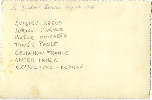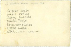 Mislim, da smo se po slikanju razšli. Eni so šli na veselico, drugi pa vsak po svoje. Mene pa je čakala JNA. 23.septembra 1957 sem z vlakom odpotoval do Ljubljane. Na železniški postaji na Rakeku sva s kolegom stala na postaji med dvema vlakoma. Vlaka sta se morala počakati, verjetno zaradi časovne uskladitve. Kolega je brez pozdrava stopil na vlak proti Postojni in ga nisem videl skoraj nikoli več.